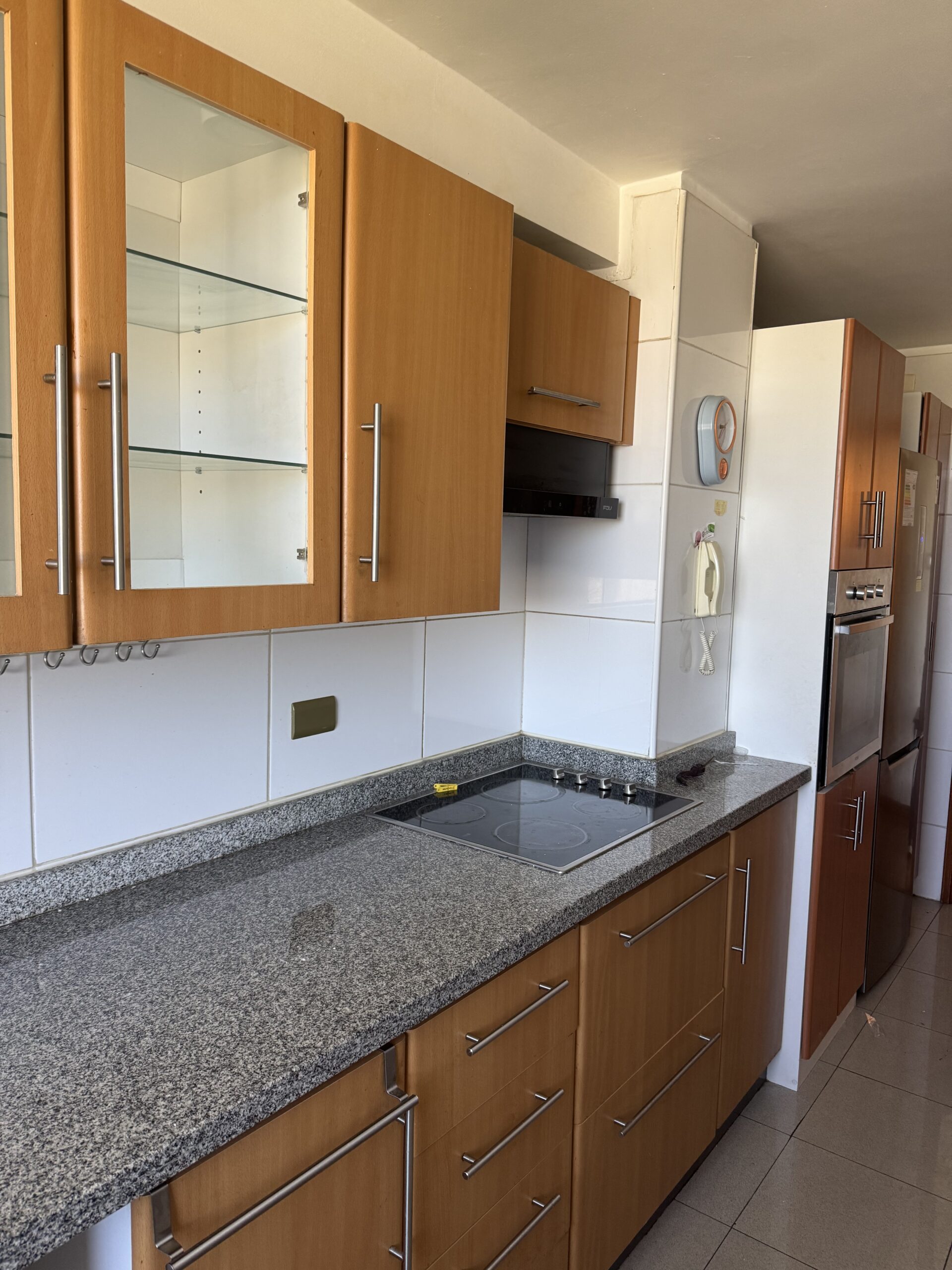Cuenta con 3 dormitorios amplios cada uno cuenta con closet, cortinas y lamparas, 2 baños amplios con espejo muebles y ducha. cocina cerrada con logia.